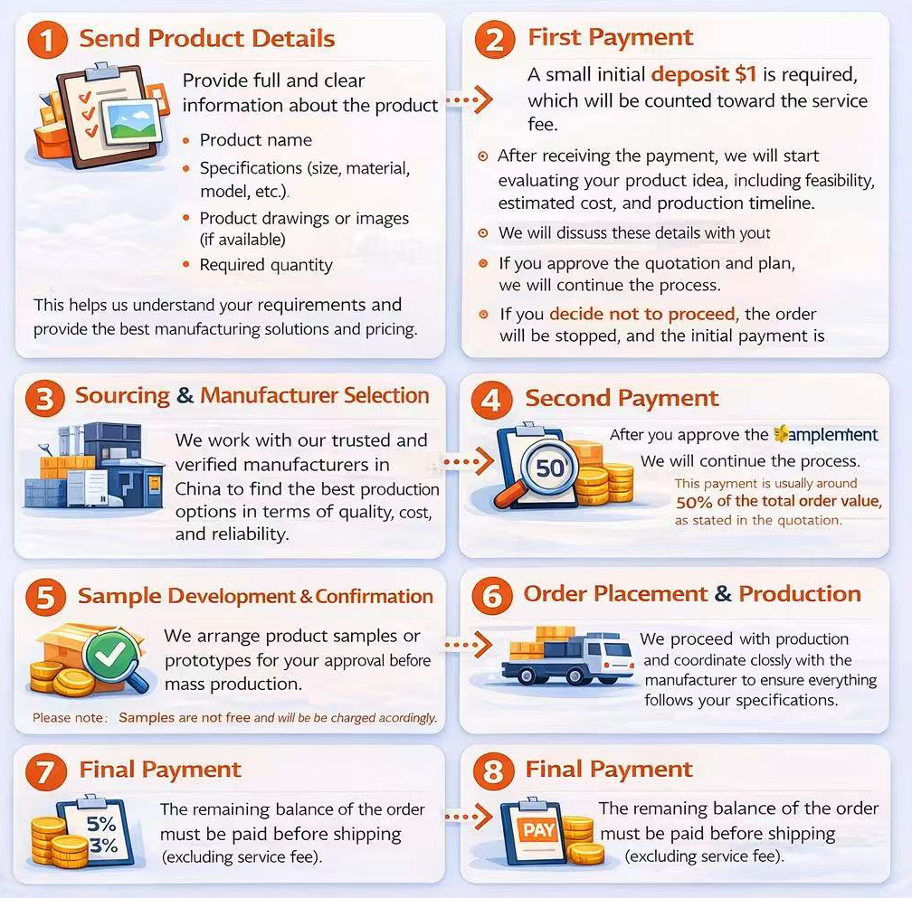 نعمل مع مصنعين موثوقين ومعتمدين في الصين للعثور على أفضل خيارات الإنتاج من حيث الجودة والتكلفة والموثوقية.